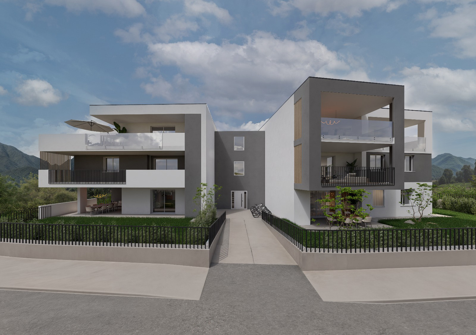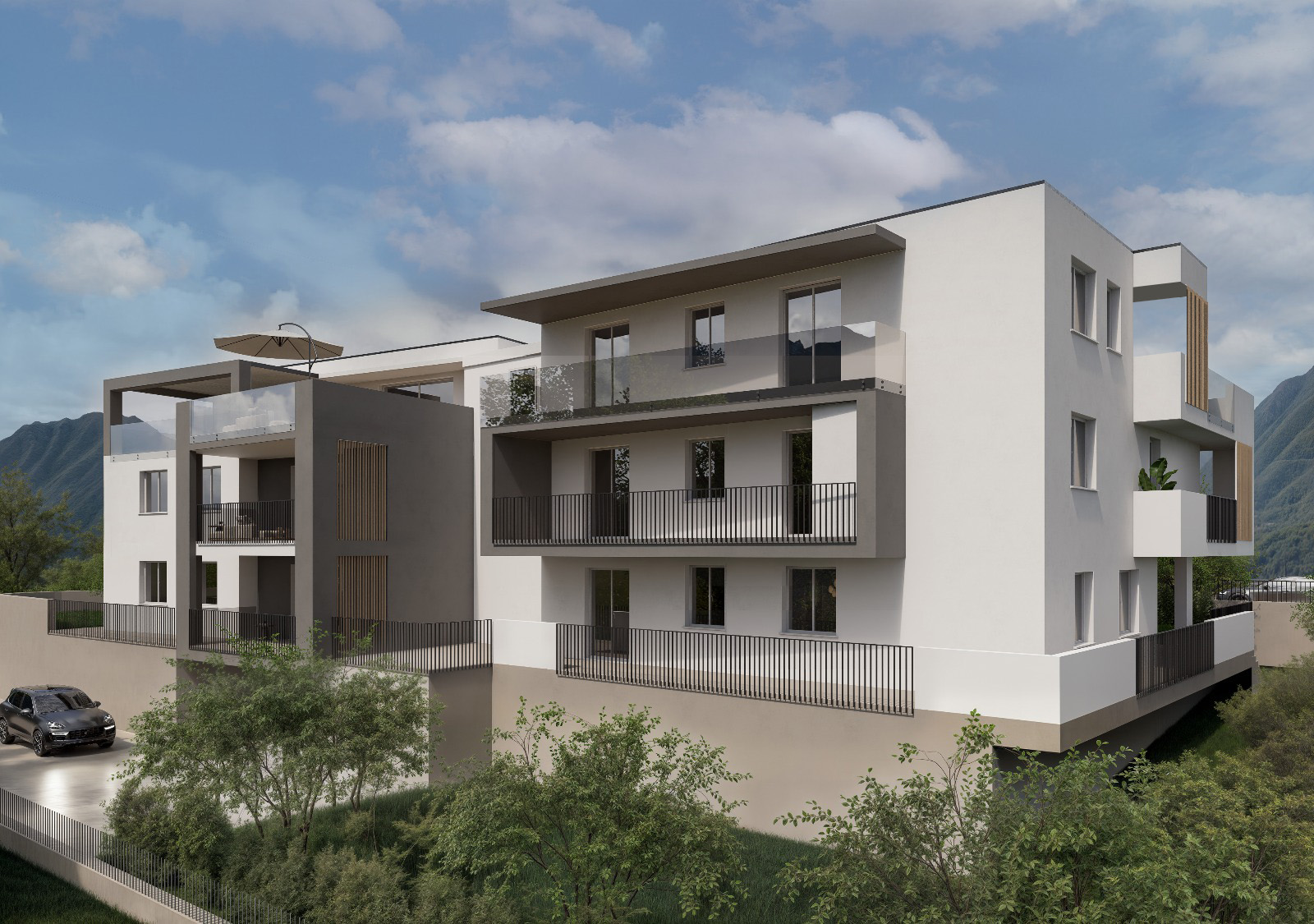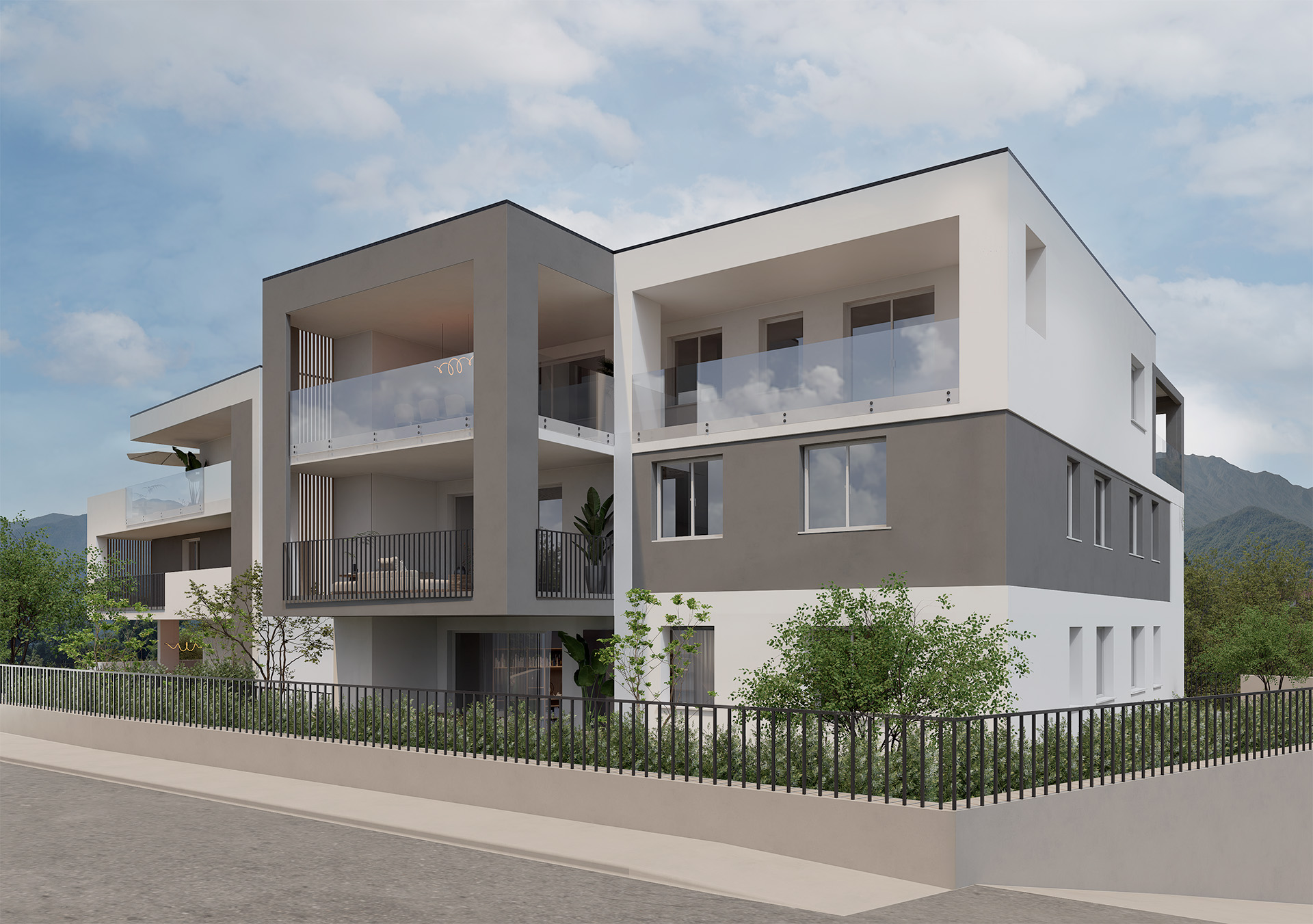 L’edificio disposto su tre piani fuori terra, in classe energetica A4, si contraddistingue per le sue finiture di pregio e per le ampie metrature delle unità abitative. L’aspetto estetico del fabbricato è moderno, con copertura piana, ampie vetrate e spazi esterni esclusivi