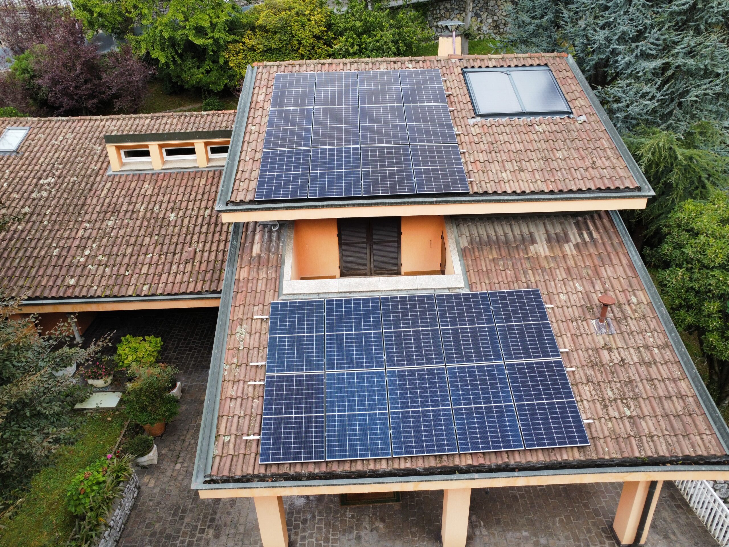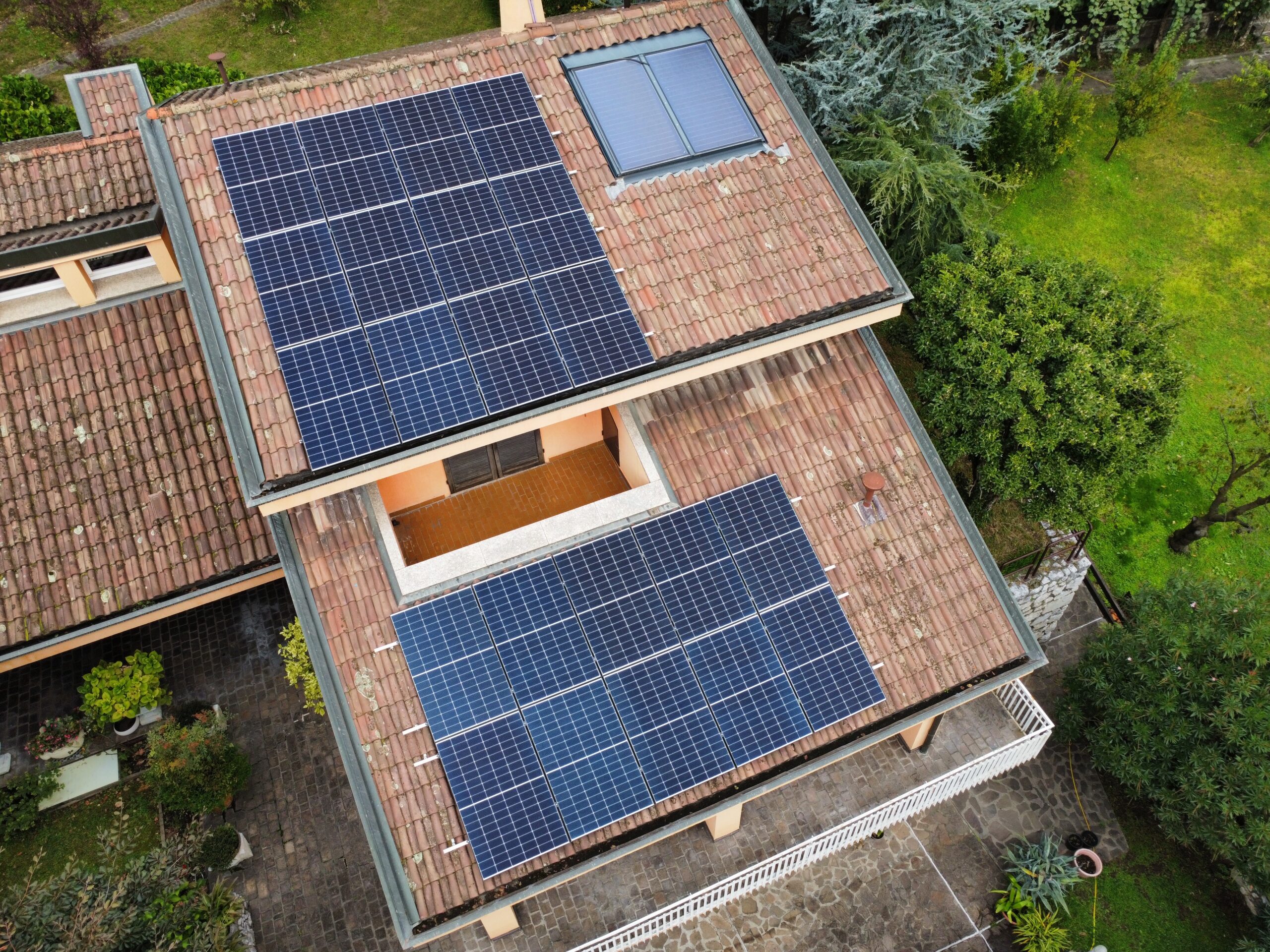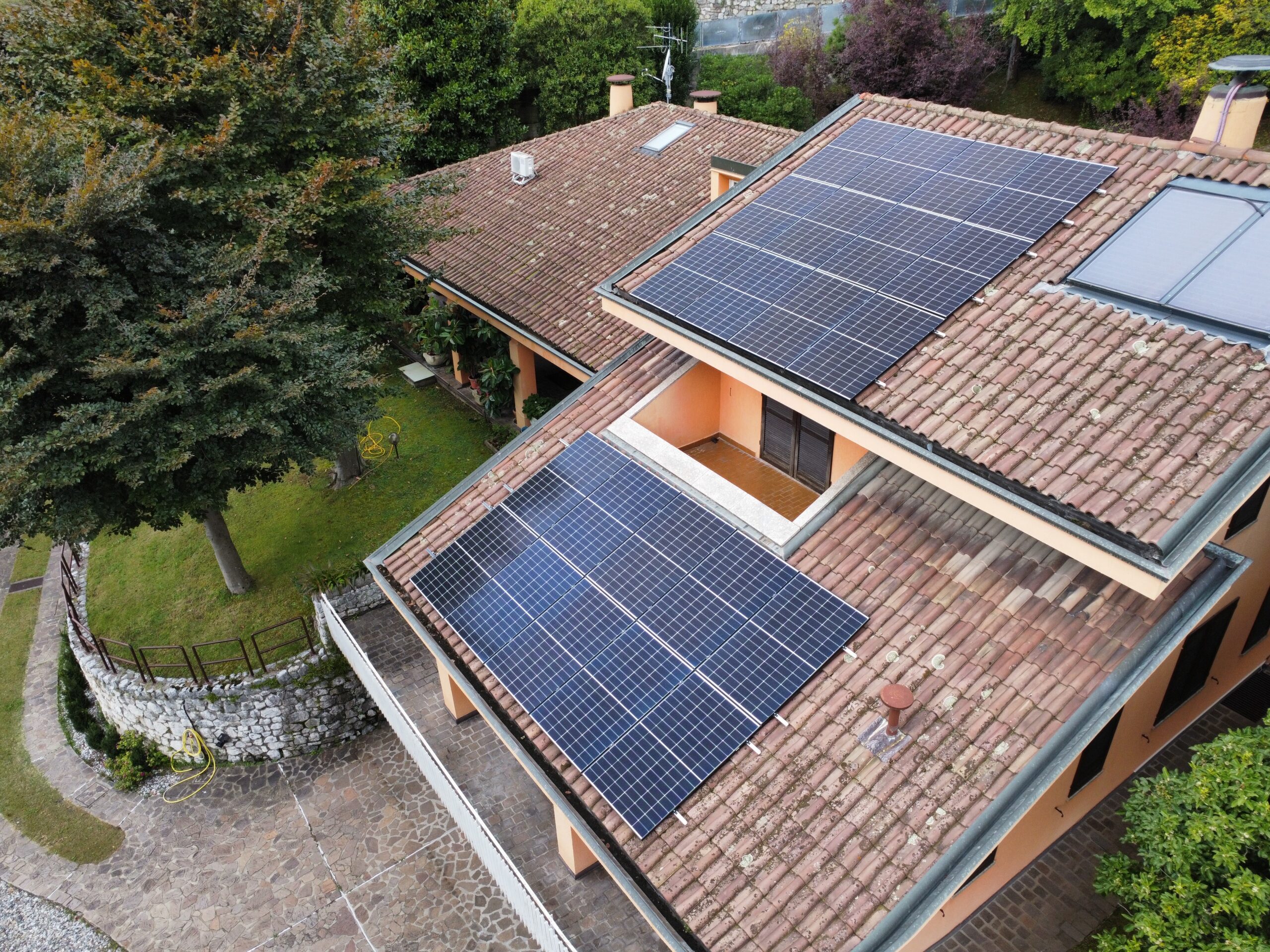 Impianto posato in aderenza alla copertura attraverso staffe in acciaio e binari in alluminio, dimensionato sulla base degli effettivi consumi del cliente e della sua famiglia.